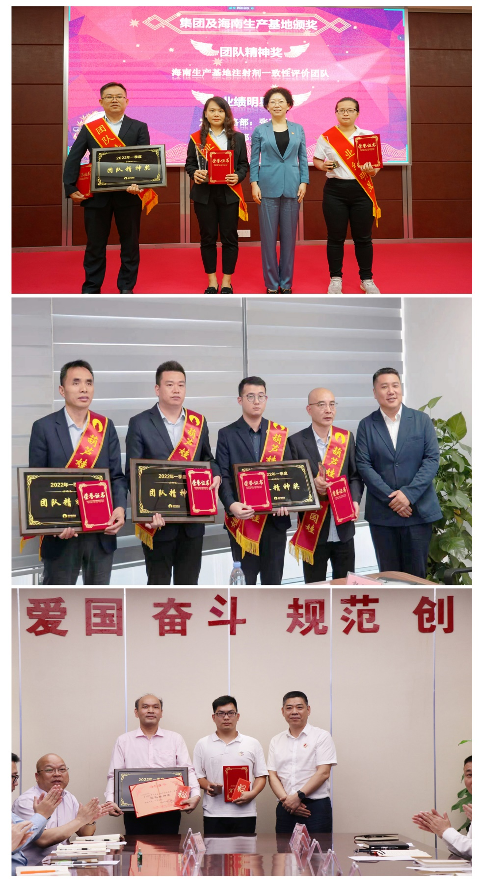为了表彰在2022年一季度“深化变革,赢得开门红”工作中“超额完成计划、超出本职工作或超越组织预期”的先进集体和优秀个人,会议期间还举行了evo视讯药业集团2022年一季度“开门红”表彰颁奖仪式。营销中心葫芦世家事业部湖南区域主管黄子杰等12人荣获业绩明星奖,葫芦世家事业部等5个集体荣获团队精神奖。